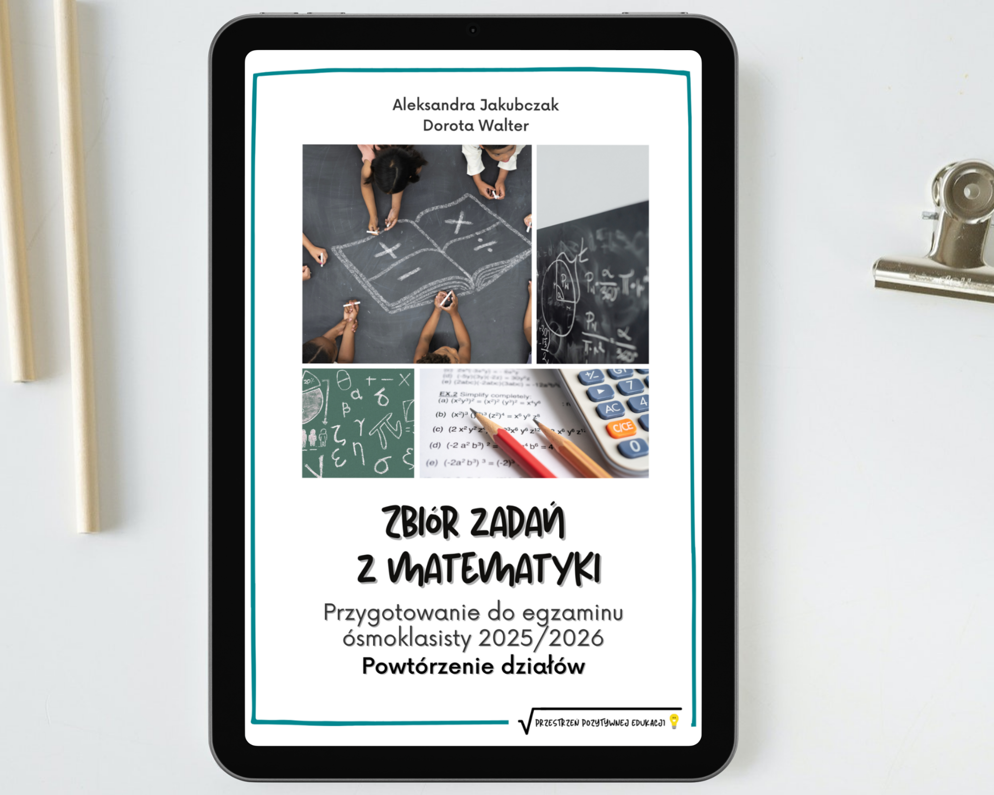 Zbiór zadań dla 8-klasistów to kompleksowy materiał, idealny do powtórzenia kluczowych zagadnień z arytmetyki, algebry i geometrii. Zawiera karty pracy podzielone na 13 tematów, notatki teoretyczne do uzupełnienia oraz zadania do samodzielnego rozwiązania. Dodatkowo w zestawie znajdują się powtórki wiadomości, sprawdziany i atrakcyjne dodatki edukacyjne, takie jak Turniej liczb, Sztafeta zadaniowa z algebry i Lapbook z geometrii. Zgodny z podstawą programową na egzamin w 2026 roku, zbiór ten wspiera nauczycieli w przygotowaniach do lekcji i egzaminu ósmoklasisty.